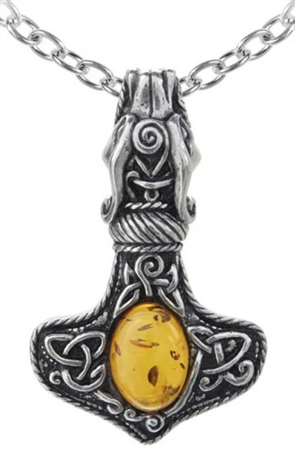 Alchemy Amber Dragon Thorhammer A classic, ornate and highly intricate pagan amulet of power and protection, fit for a high ranking Saxon or Viking leader/warlord. The head of a dragon bites the chain and the Celtic knot-worked hammer