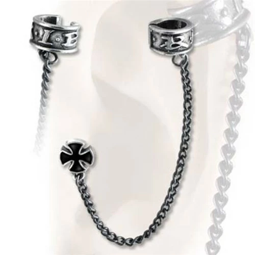 Aposthumous Iron Cross for a godless combatant. With black enamel cross. Cuff stud earring.