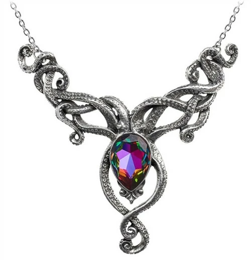 A large, antiqued and polished pewter casting of a giant squid, set with a large, Volcano effect, pear-shaped Swarovski crystal at its centre.
