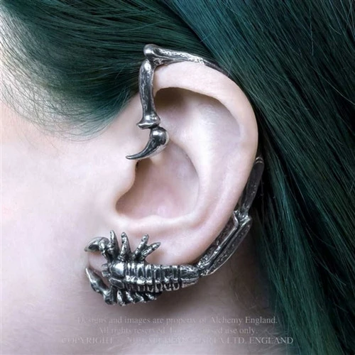 The Khthonis Earwrap by Alchemy is a three-headed serpent, faux-stretcher ear-wrap with surgical steel ear-post. For the left ear.