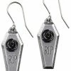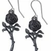 These Sterne Leben Droppers by Alchemy are a delicate pair of gothic tracery, pewter dropper earrings in antiqued pewter, in a star motif set with a black Swarovski crystal.