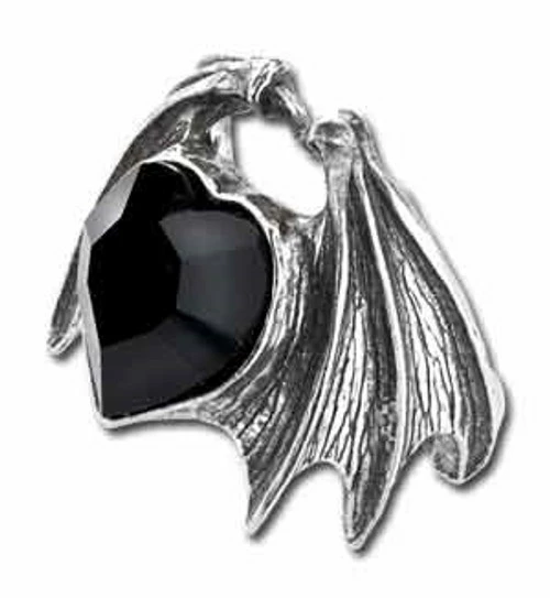 Bold symbol of doom and emotional dearth, set with large black Austrian crystal heart.