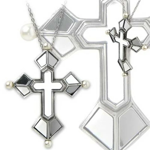 The famous glass of Venice, reflecting its devout faith and its vision into the depths of the unknown; with mirrored panels & Swarovski cream ‘pearls’.