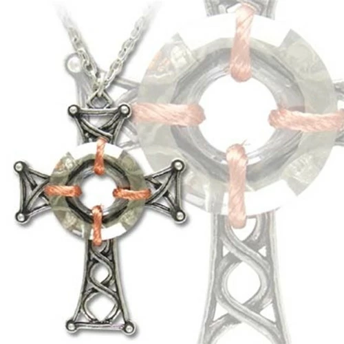 A stunning ring of faceted Swarovski crystal is bound by copper to a Celtic cross of the C7th saint, who turned stubborn pagans into stone