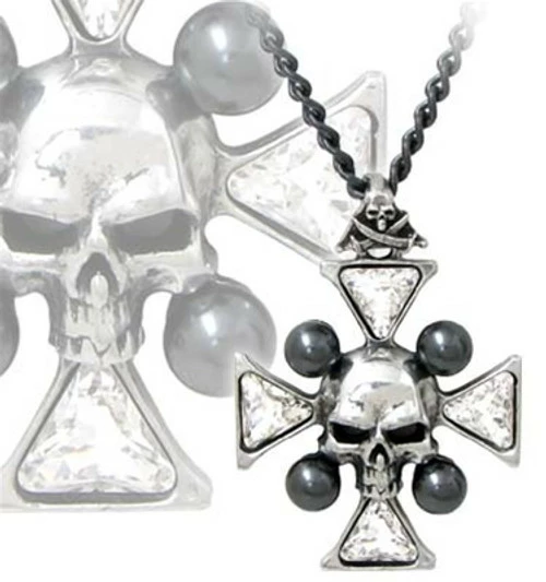 Derived from the ancient and venerable order of the Knights Hospitaller, the cross and bones of its patron, St John the Baptist, is revered with Swarovski crystal and black pearls.