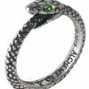A pewter handspan ring covering three fingers, of a black, spreadeagled raven with highlighted trailing edge feathers, on a polished pewter shank.