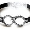 A 50mm high crescent moon-shaped dragon in antiqued and polished pewter, with a black pearl and fine black and silver chain tassel suspended beneath.