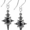 The Romance of the Black Rose Droppers by Alchemy is a pair of small black pewter rose pendant-earrings on stainless steel ear-wires.