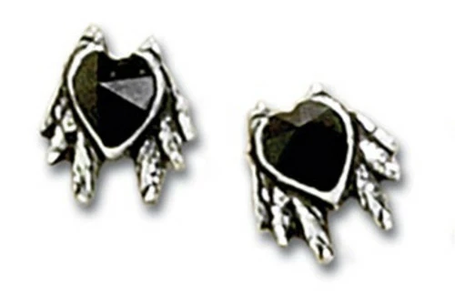(pair) Jewels for an ineffable soul; with black Swarovski crystal hearts.
