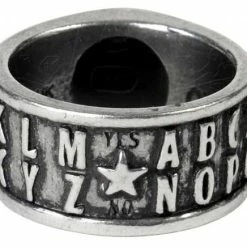 An antiqued pewter ‘seance’ band ring with a full, raised alphabet