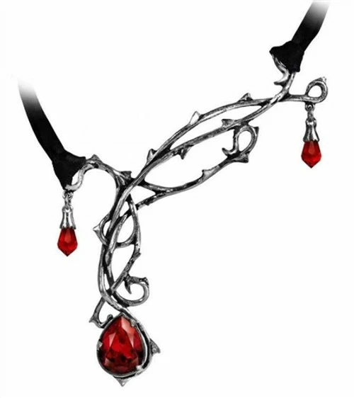 A twisting knot of sacred thorns, weeping tears of blood-red Swarovski crystal.