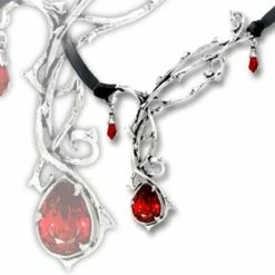 Polished pewter asymmetrical thorny bramble necklace. Finished with crystal blood drops and a Swarovski cut crystal blood gem.
