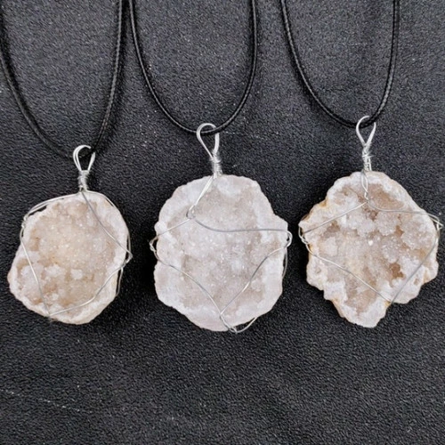 Quartz Geode Wired Pendant – Natural 3cm