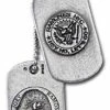 Cast pewter supplied as a pair with details on reverse as indicated. Includes ball chain.