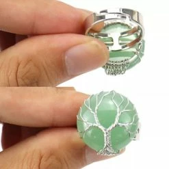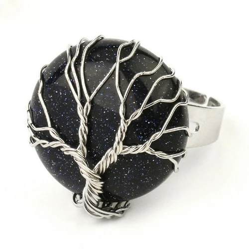 Silver Ring featuring a 2cm disc shaped crystal with wire work to depict the Tree of Life.