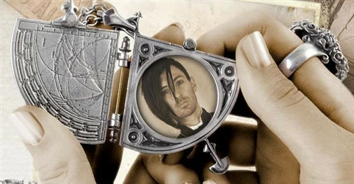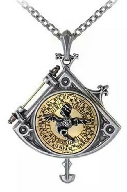 This Alchemy Locket is developed from a rare 16th Century instrument, originally used by occultists for divination using the movement of the astral dragon through the heavenly stars. Pewter and etched brass locket, hinged with magnetic fastening.