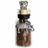 A glass bottle filled with turquenite crystal chips and decorated with a charm featuring a feather – ideal for insight and visioning – or create your own magickal associations